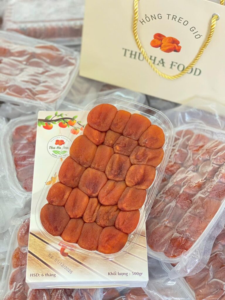 Hồng Treo Gió Thu Ha Food c.a.m k.ế.t không sử dụng hoá chất, không sử dụng đường phụ gia, hoàn toàn tự nhiên 100% từ trái hồng. Đảm bảo đúng chất lượng, an toàn cho sức khoẻ, hồng treo nguyên trái nguyên cuốn, không phấn trắng, không dập nát, cắt xẻ, đúng chuẩn hồng treo loại 1.